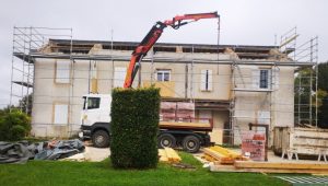 Les travaux ont commencé début octobre par la démolition du petit garage situé sur le côté droit, afin que le bâtiment retrouve sa symétrie d’origine. Cette opération a été réalisée par l’entreprise ABAT de Chavannes-sur-Reyssouze pour un montant de 1 700 € HT.