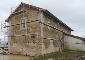 La rénovation de la façade a été confiée à l’entreprise Druguet Bâtiment de Montrevel-en-Bresse pour un montant de 38 228 € HT. Au début des travaux, la découverte d’une façade entièrement en pierre a conduit au choix de la laisser apparente.